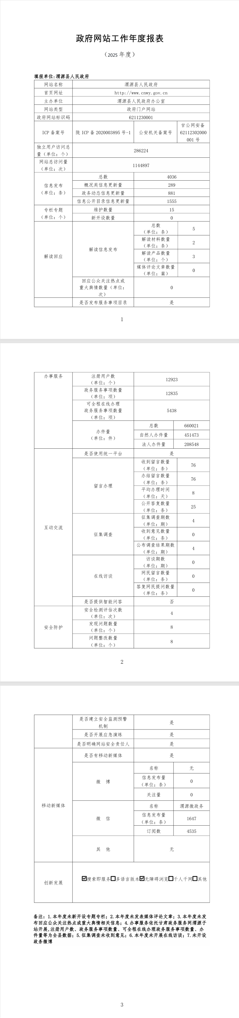 定西市渭源县人民政府2025年政府网站工作年度报表